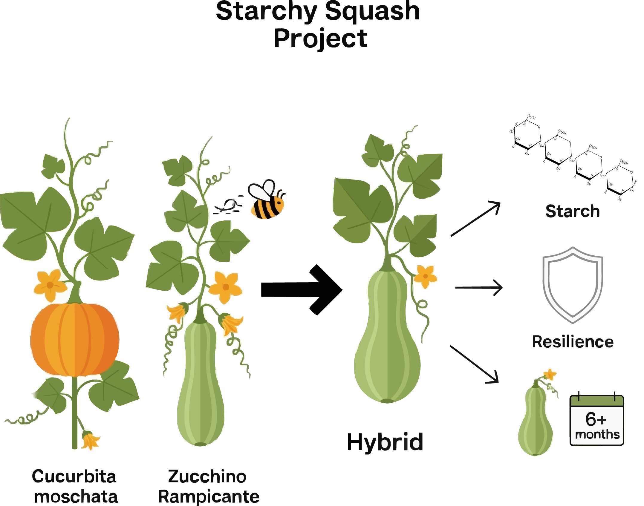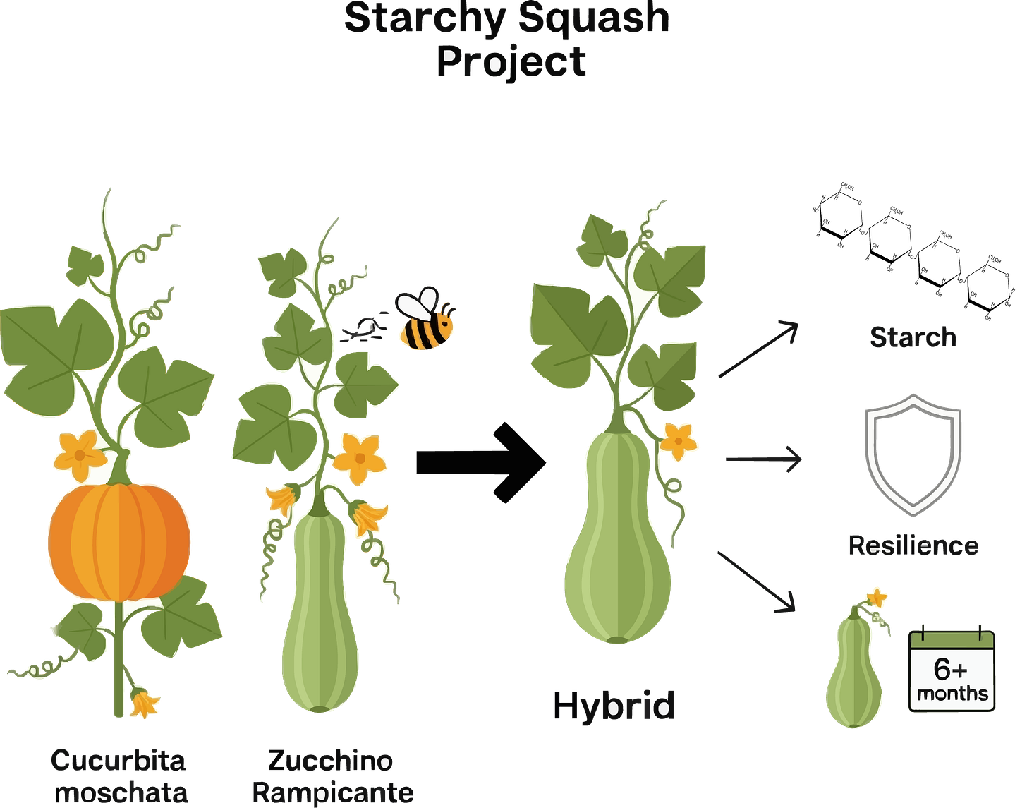 The goal is to create a new staple crop: a winter squash that is packed with storable starch, highly productive, and incredibly robust.